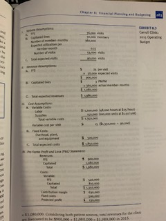 Construct Tallahassee Clinic’s static operating budget for 2018.(See Exhibit 8.3, page 283. Note that there are four componentsthat need to be included: Volume Assumptions, Revenue Assumptions,Cost Assumptions, and the Pro Forma Profit and Loss or P&Lprojected Statement.)