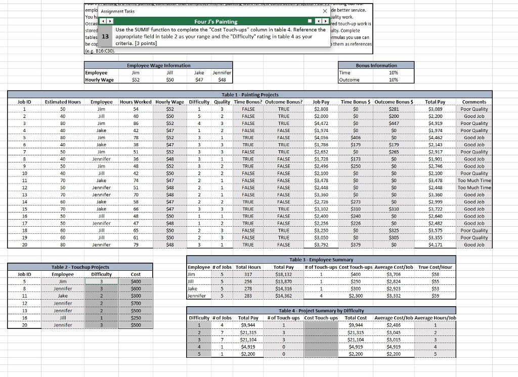 The formula in first empty cell of ‘Cost Touch-ups’ field inTable 4 will be