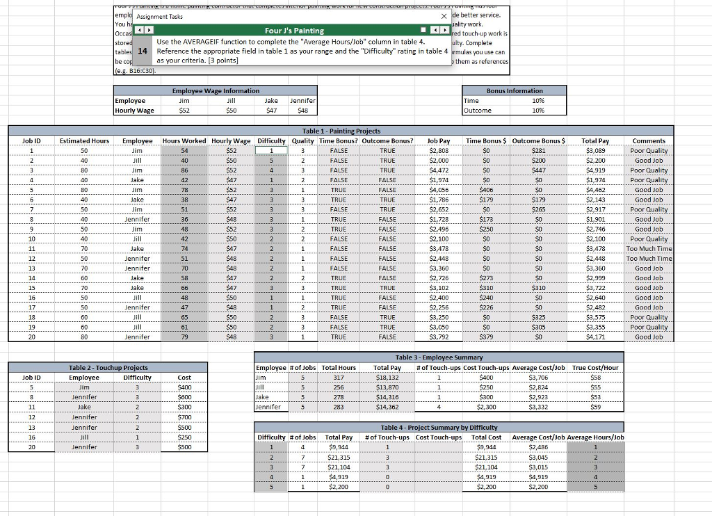 Both screenshots have a question at the top. I am stuck on howto use SUMIF and AVERAGEIF properly.