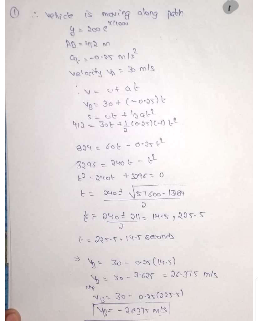 1. Consider a vehicle which moves along the path as shown in Figure Q1. At the instant
