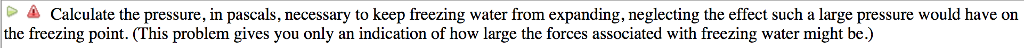 (17%) Problem 3: The density of water at 0°C is very nearly i 000 kg/m3 (it is actually 99984 kg/m), whereas the density of ice at 0°C is 917 kg/m3. The bulk modulus of ice is 2.20 x 10 Pa. Show transcribed image text