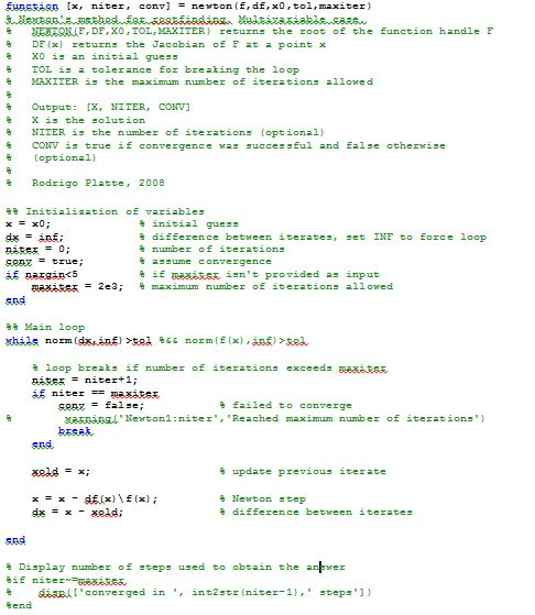 The code for the Newton’s method is:
