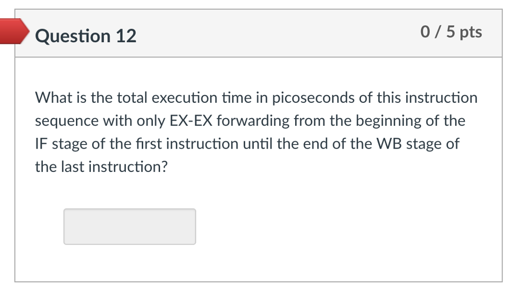 ![The following questions pertain to this code snippet. Analyze snippets for pipeline hazards and insert no operation (NOP) instruction to ensure correctness, given the forwarding that is specified. Note: Full forwarding means there is both a link from EX-EX and a link from MEM-EX ltem Instruction LDUR X5, [X5, #40] STUR X5, [X5, #-16] 2 3 ADD X5, X5, X5 Here are per-cycle latencies for different forwarding implementations: No Forwarding Full Forwarding EX-EX Forwarding 200 ps 250 ps 220 ps](https://d2vlcm61l7u1fs.cloudfront.net/media%2Fd08%2Fd086860c-adb6-4f06-b6bc-60060cc913e6%2FphpIlsDc5.png)